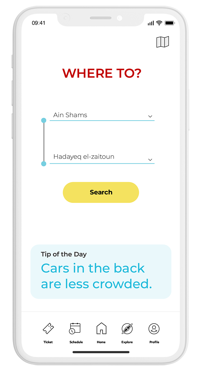 Problem: The Cairo Metro system is flawed. It’s stressful and time-consuming to buy tickets in the long kiosk lines, and it’s difficult to navigate the bustling, complicated railway system. To make things worse, the app is outdated and hard to understand for non-Arabic speakers.