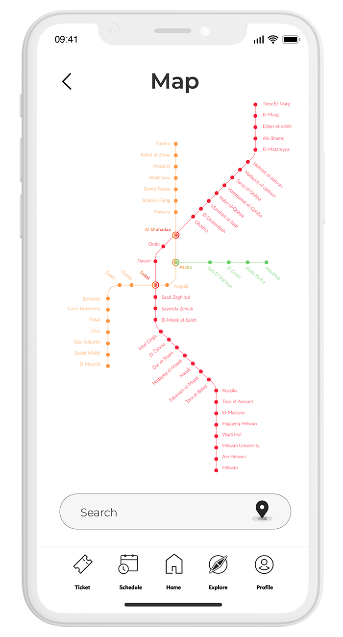 Solution: With simplicity in mind, I redesigned the whole app. I updated the logo, color palette, and app icons, as well as the Metro map, to make it easier for everyone to use. Most importantly, I added new language options so even tourists can navigate the app easily. The new app improves every step of the Cairo Metro experience, from purchasing a ticket to arriving at your destination.