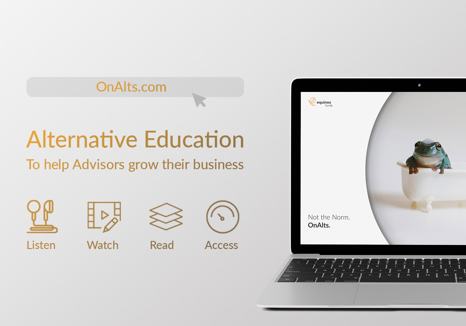 OnAlts is an award-winning alternative education website created by Equinox Funds. As part of the marketing team I was involved in building, marketing, and branding the site.